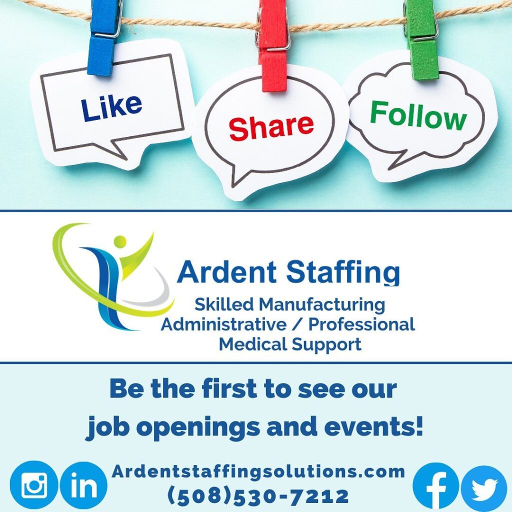 Find your new job today!! @ardentstaffing is bringing a different level of energy to every interaction and placement! Our passion is people. Contact us to put our passion to work for you! (508)530-7212 #ourpassionispeople #workwiththebest #nowhiring #hireardent #newjob #mondaymotivation Apr 12, 2021Read More