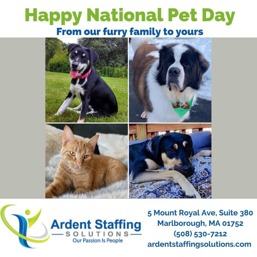 @ardentstaffing is wishing all our furry friends a very happy day! Once you’re done celebrating, tell your humans to call us for a new job!! We have lots of great opportunities available!! #nationalpetday2021 #hireardent #ourpassionispeople #newjob Apr 11, 2021Read More